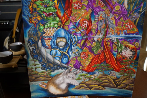 -"Tenugui" (or Japanese handtowel - these can also become Noren - you receive 1 of either a man or woman design)