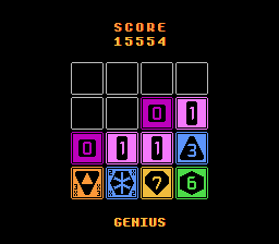 [6][7][6][2] on a row or columb and for instance, I'll try to sort how best to manipulate the 6 tiles to get them side by side to mate together and form a 7 which combines with the other seven to form an 8. The 1s and 0s more often than not like to form checkerboard arrangements with themselves or other numbers, leading to gridlock. And I am constantly working to combine the little ends which keep on coming whilst trying to combine the mediums to for the next largest step. One strategy that works is I'll get say a 2 and a 3 together, well I start stacking 0s which become 1s which then combine to for a 2 then I can chain reaction up the ladder. But two many medium numbers in odd arrangements when I really need a next-highest can be devastating too. It's all well and good to clear out the 1s and 0s to generate a few 3s, 4, and 5s, but I've already got two 6s, a 7, and an 8 in awkward posistions that need to be combined to 7-8-9. Rarely reaching 9, it is now necessary to built up the chain 6-6-7-8-9 again to ultimayely form X, but with one less space on the board, all while guggling the constant onslaught of fresh 0s and 1s. Multiples of any intermediary denomination posistioned such that they cannot readily combine can quickly lead to gridlock. And when I get two targets adjacent to each other, say side by side, a decision whether to combine left vs right or up vs down requires serious consideration: will this move bring other matched pairs closer or futher apart? And there is always the random nature of the board. Will I get a 0 or a 1? Will a randomly inserted low end potentially block my next planned out move?