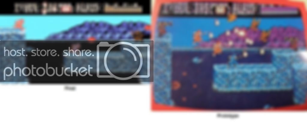 -Mountains in the background are different, and are different colors. Not 100% on the colors since the cameras used could have messed with it, although the color of the proto mountains matches the lifebar colors. This isn't true in the final, so I assume the mountains are actually a different color also.