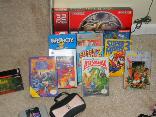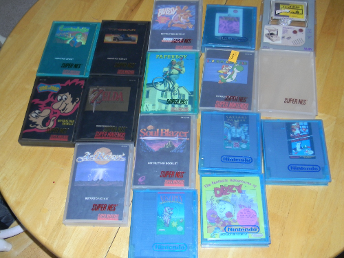 Im having a great time looking through this stuff...everything is mint and she has little notes in the boxes on paper...such as cheat codes etc....the recipts are in every box...there is sooo much more to this grab than what is pictures too...I have CIB Sega 16 bit system, NES system complete, zelda with minty maps, manual, soul blazer maps and manual, Pepsi secret code cards...so much stuff