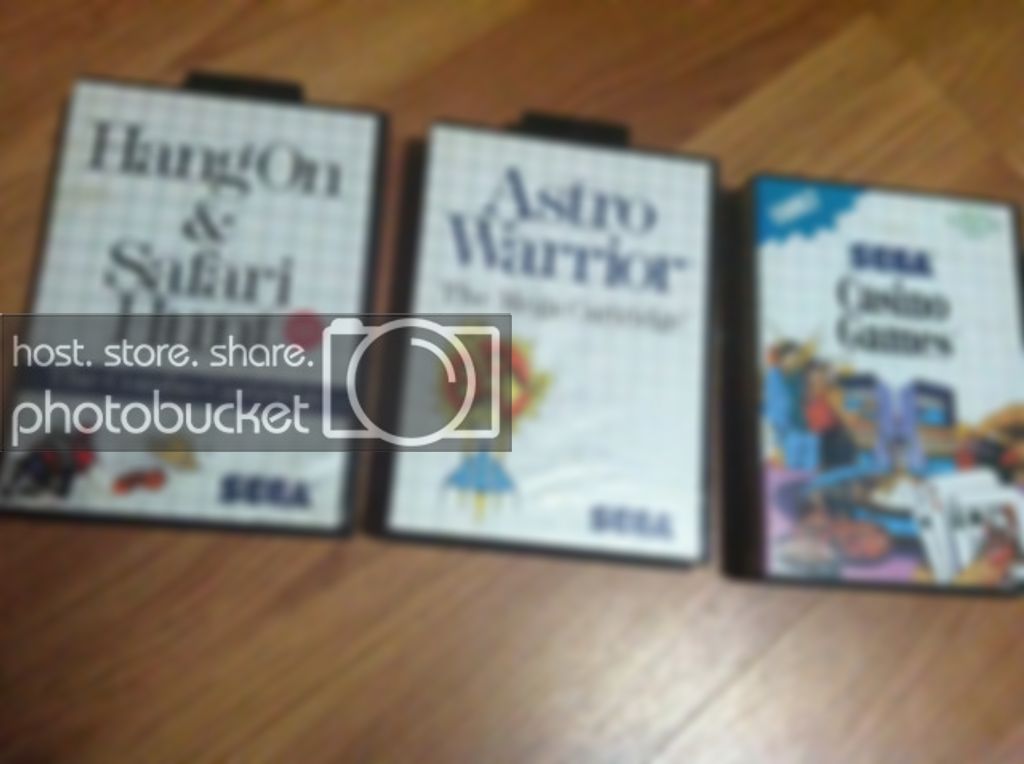 3) Sega Master System CIB Lot Casino Games, Astro Warrior, Hang On & Safari Hunt