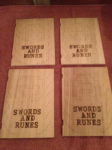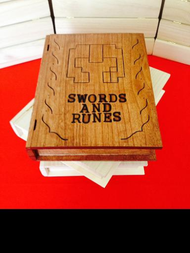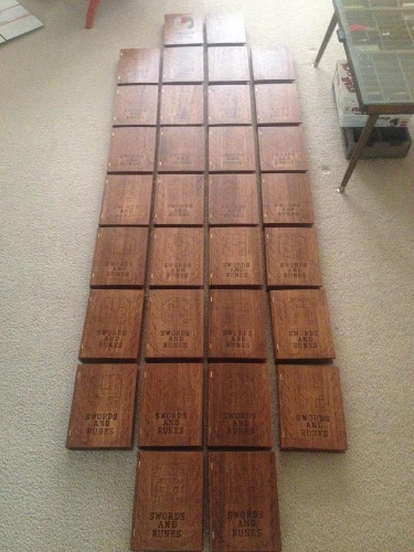 Swords and Runes. The release of the LE went rather well (thanks to all supporters!), and other than a label that likes to peel up along the top edge, I am rather happy with how everything turned out. The LE was very much a collaborative project, giving user and I a chance to return his awesome game (it was finished in January, and we have understandably been more focused on the future, and less on re-visiting the past). It also provided M-Tee an opportunity to express his creativity and skill with the map. As I detailed in previous posts, I was even able to work together with my grandpa on the staining portion of the boxes, and my brother was kind enough to give me a hand with formatting the labels for printing. It was certainly a family project at times, and I must of course point out the fact that my wife helped with almost every aspect of the release. LE holders can thank her for the tea stained map