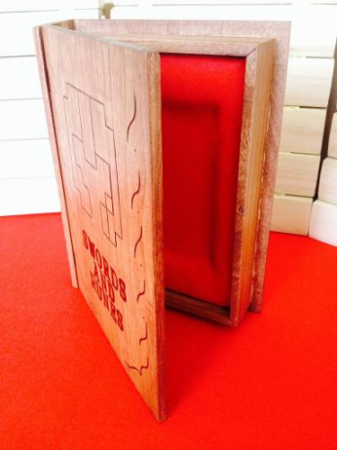 The box was chosen to reflect the game itself, which is a narrative adventure set in a land of magic and high fantasy. There will be four designs for the LE, as each of the four protagonists deserves to find his or her place on the cover of the game. I still have not decided how the division of characters will work. Either a set number could be made, or the recipients could individually choose which character they would like to adorn their boxes. The color of the inner cloth will be specific to each character. In coming days I will also be experimenting with painting the faces on the boxes, in order to bring them more to life.