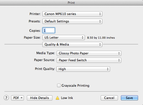 Proper print settings are a must! Assuming you are using the same labels then you will want to make sure you're printer property settings match the paper type you are using. On my Canon MP610 I'm using the "Glossy Photo Paper" and Print Quality as "High" setting.