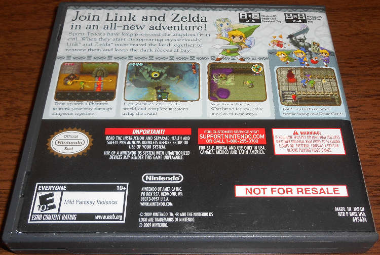 Up for auction are two DS Not For Resale Zelda games with complete front labels and back stickers. These are both legit demos, distinct from the retail versions. Spirit Tracks comes with the snazzy/hard-to-find For Display Only variant artwork that also says Not For Resale on the back of the case. This is one of the nicest Spirit Tracks NFRs I have seen (very clean front label and good, vibrant back sticker).