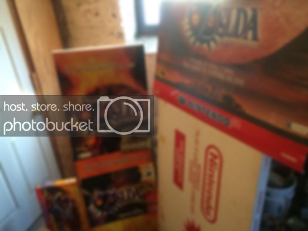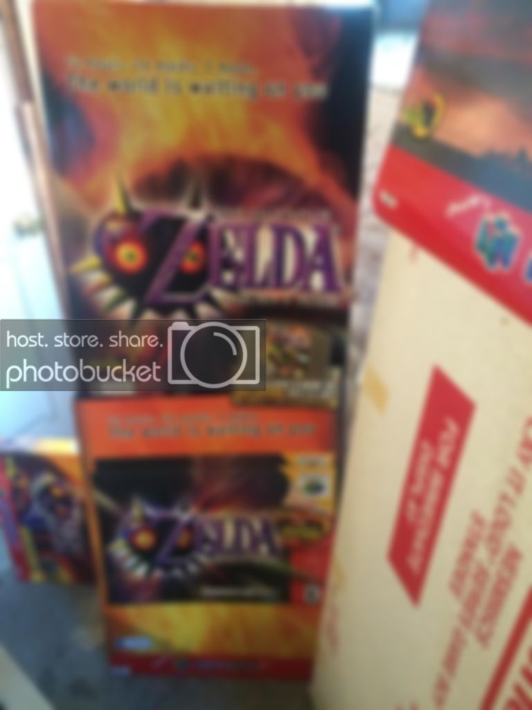 Oh... so how long did it take you to get these standees? I have a feeling it's gonna take atleast a couple of years for me to come across even one of those, but I DO want 'em. If you see another one of these on Ebay, craigslist, here on NA, anywhere, and you don't want it, or if you decide to sell the ones you already have, if you can go ahead and PM me, I'm very envious of those. So, when did you get those, and, follow up question, how much did you pay for them, if you don't mind me asking? Oh, and one last question, has any more of those purple Majora's Mask For Display Only boxes popped up since you got that one? Seeing all of this stuff you have REALLY makes me wish I would've gotten into video game collecting earlier DX