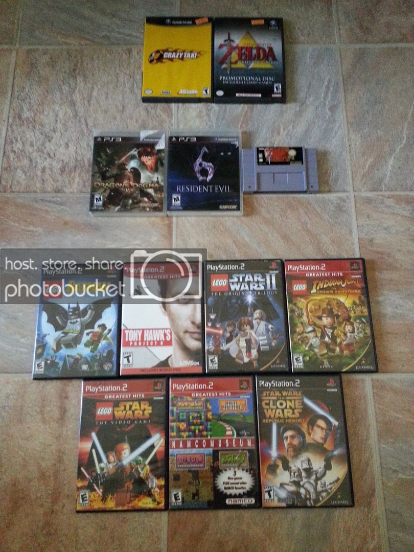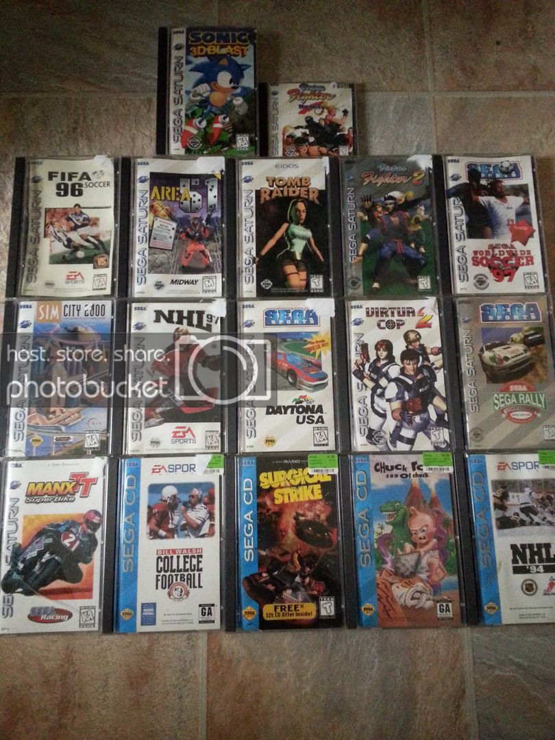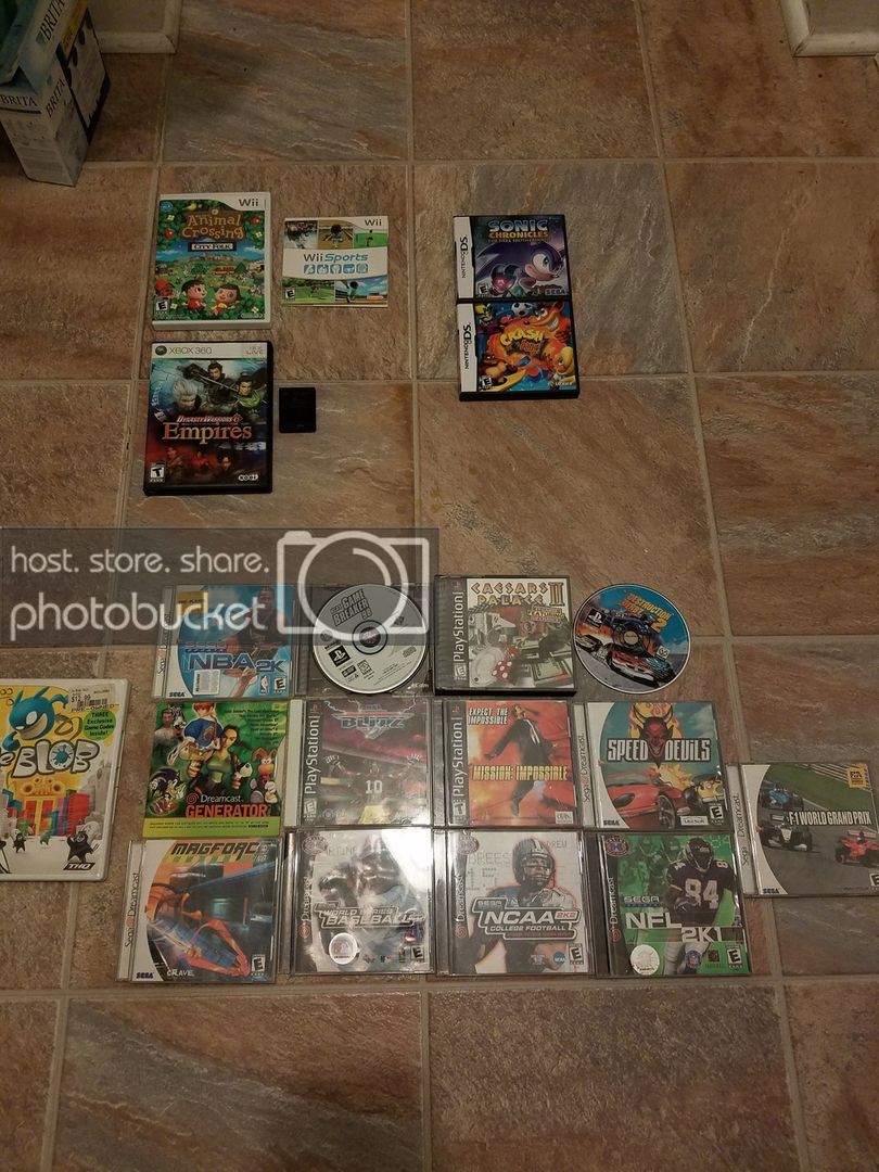 The dreamcast/ps1 lot came from the thrift store. They were put into two seperate bags and one of them even had a faith hill cd and some other useless crap. All Sports. The top row of games is either missing game, case, or broken. Allot of the games looked pretty scuff, maybe poorly buffed. Allot of the cases are broken. Those and the wii game the total was $10. -->