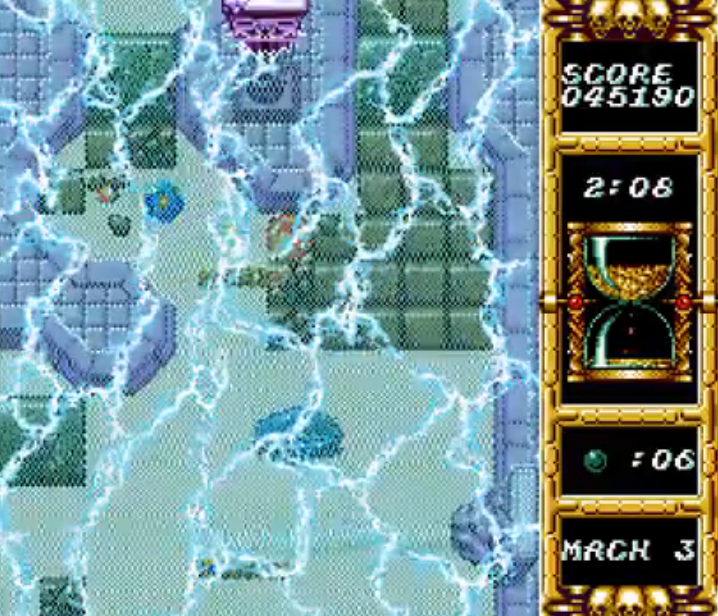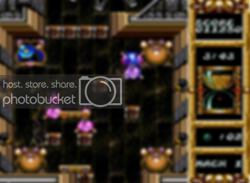 -There are 7 stages, each taken place in unique surroundings such as inside a clock tower, volcano, and a flying castle. Your paddles together are in charge of keeping the sphere from being dragged out of the screen and breaking your way through victory. Some stages end with a boss battle or challenge that prevents you from going any further to the level. You are timed from making it out of these levels in time but honestly, I didn't really have any trouble in making it out of these stages before the timer ran out but hard mode is another story as they give you just barely enough time to make it out. Also there are